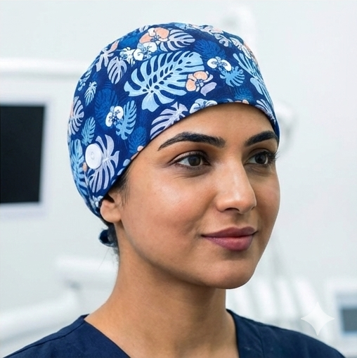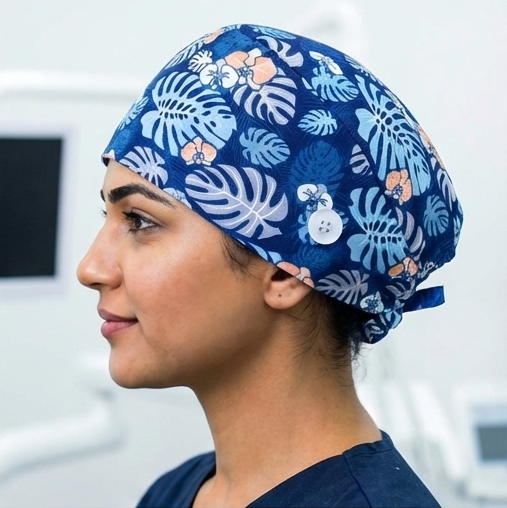 Our scrub caps are more than just a necessity; they’re a blend of thoughtful design and functionality. Crafted from the finest premium cotton with antimicrobial properties, they provide unmatched comfort, even during long hours. The sweatbands ensures ease, while the combination of ties and elastic offers a snug fit for all head sizes. For added convenience, side buttons are included to securely attach face masks. And because we care about our planet, every scrub cap is made using environmentally friendly processes